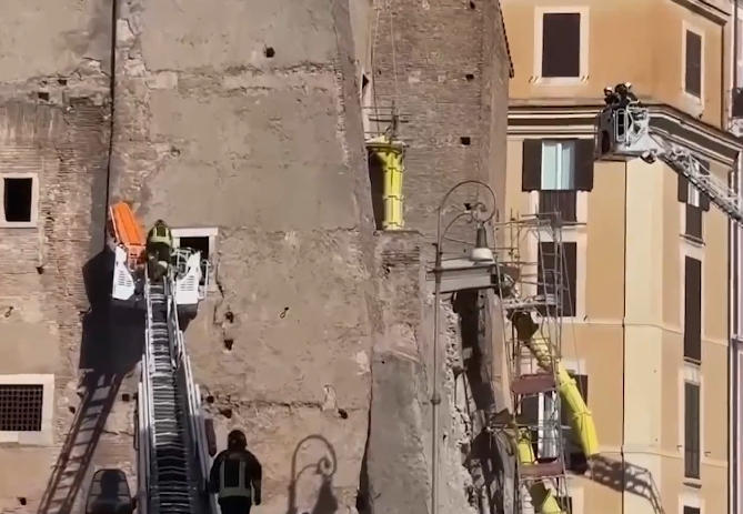 罗马古塔楼倒塌瞬间 视频截图
